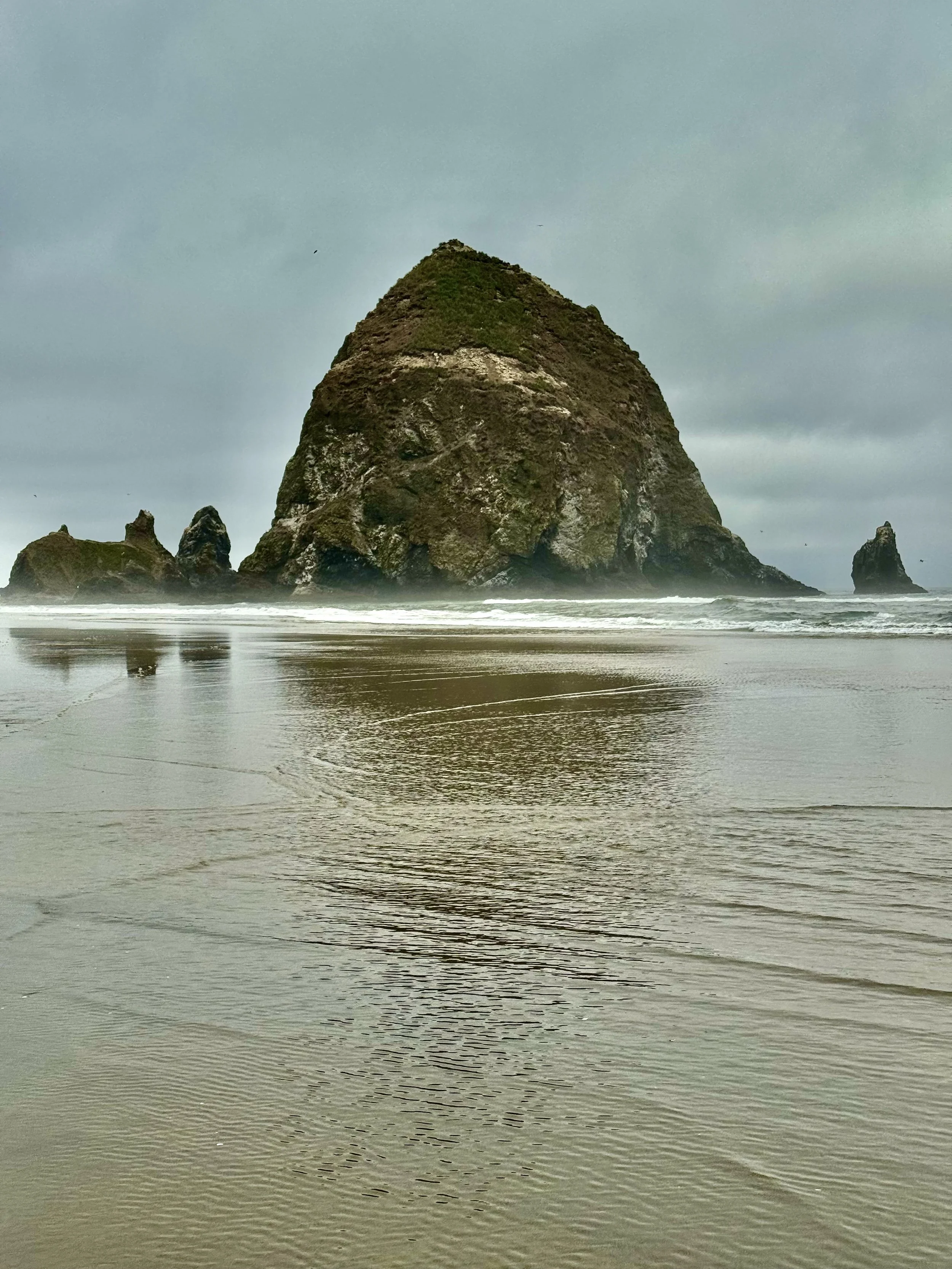 By late morning, we made the pilgrimage inland to the Tillamook Creamery, because no Oregon road trip is complete without a stop for ice cream and cheese samples. We tried (and failed) to find Cape Meares Lighthouse—construction detours kept rerouting us—but we pressed on to Rockaway Beach, where the ocean stretched endless and gray.