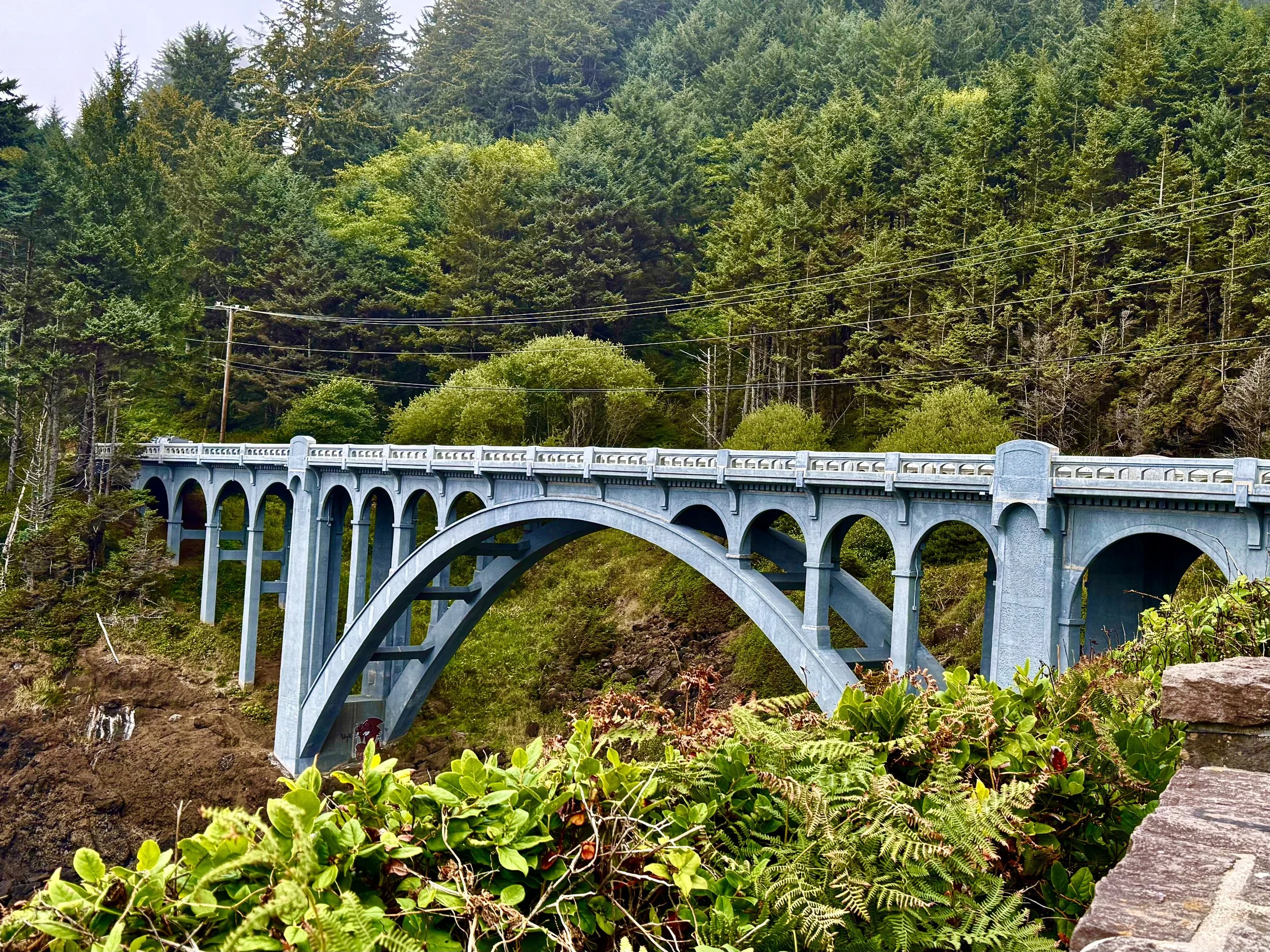 The rest of the afternoon was a scenic blur—Otter Crest Scenic Viewpoint, the churning cauldron of Devils Punchbowl, and Depoe Bay, where whale watchers leaned over railings as gray whales breached offshore. Crossing the graceful Conde McCullough Bridge, the sun dipped low, painting the coastline in soft amber light.