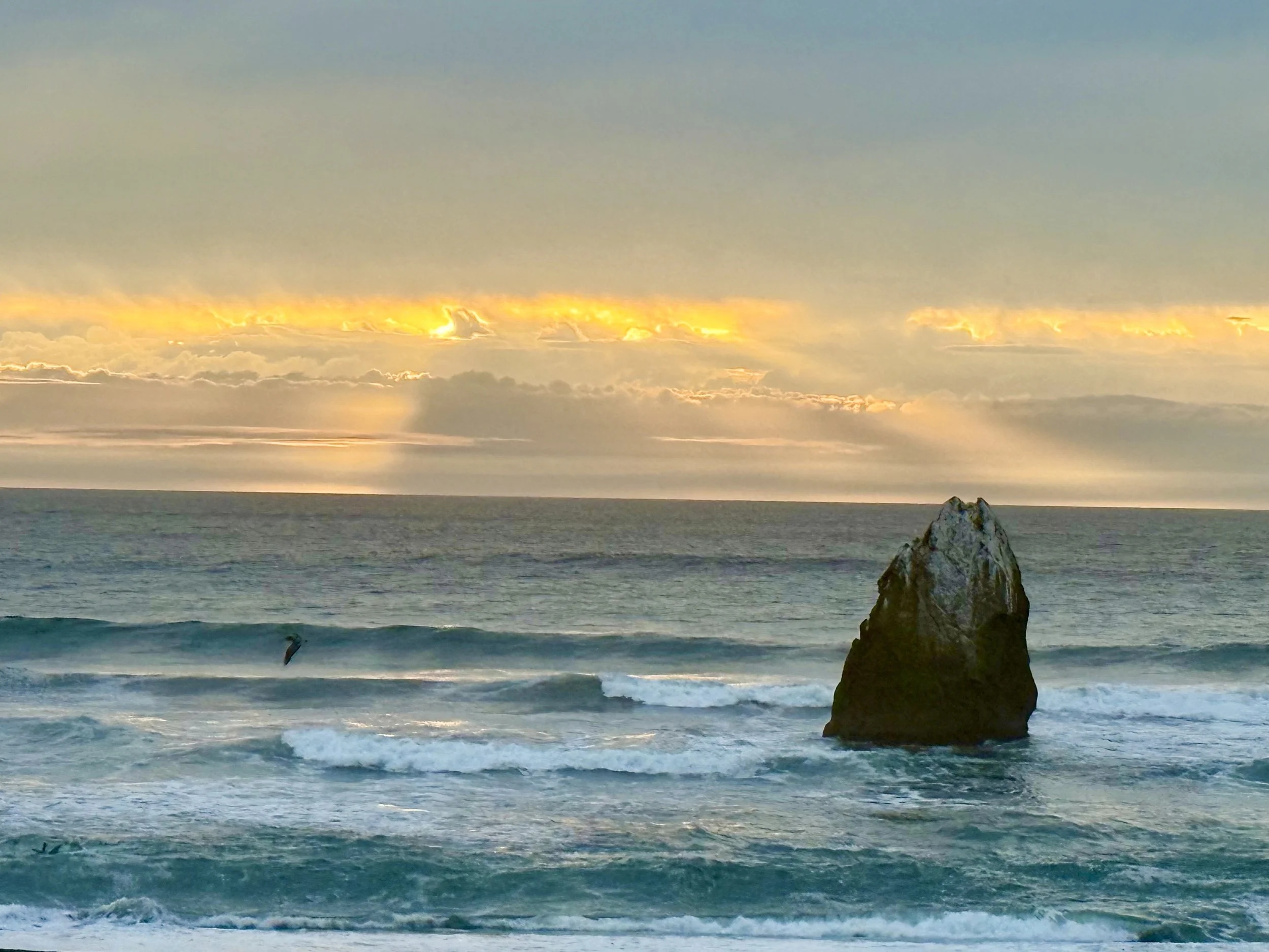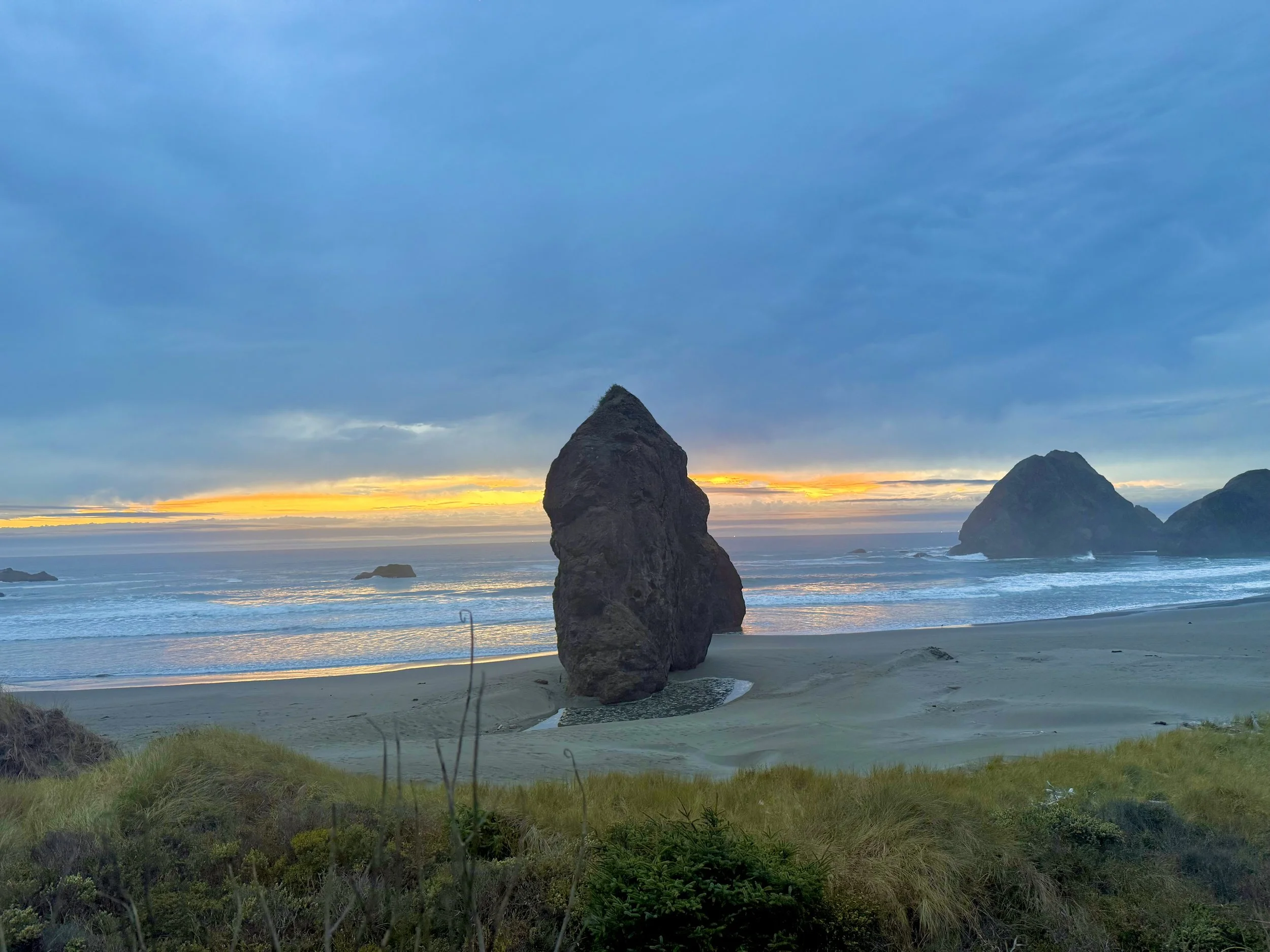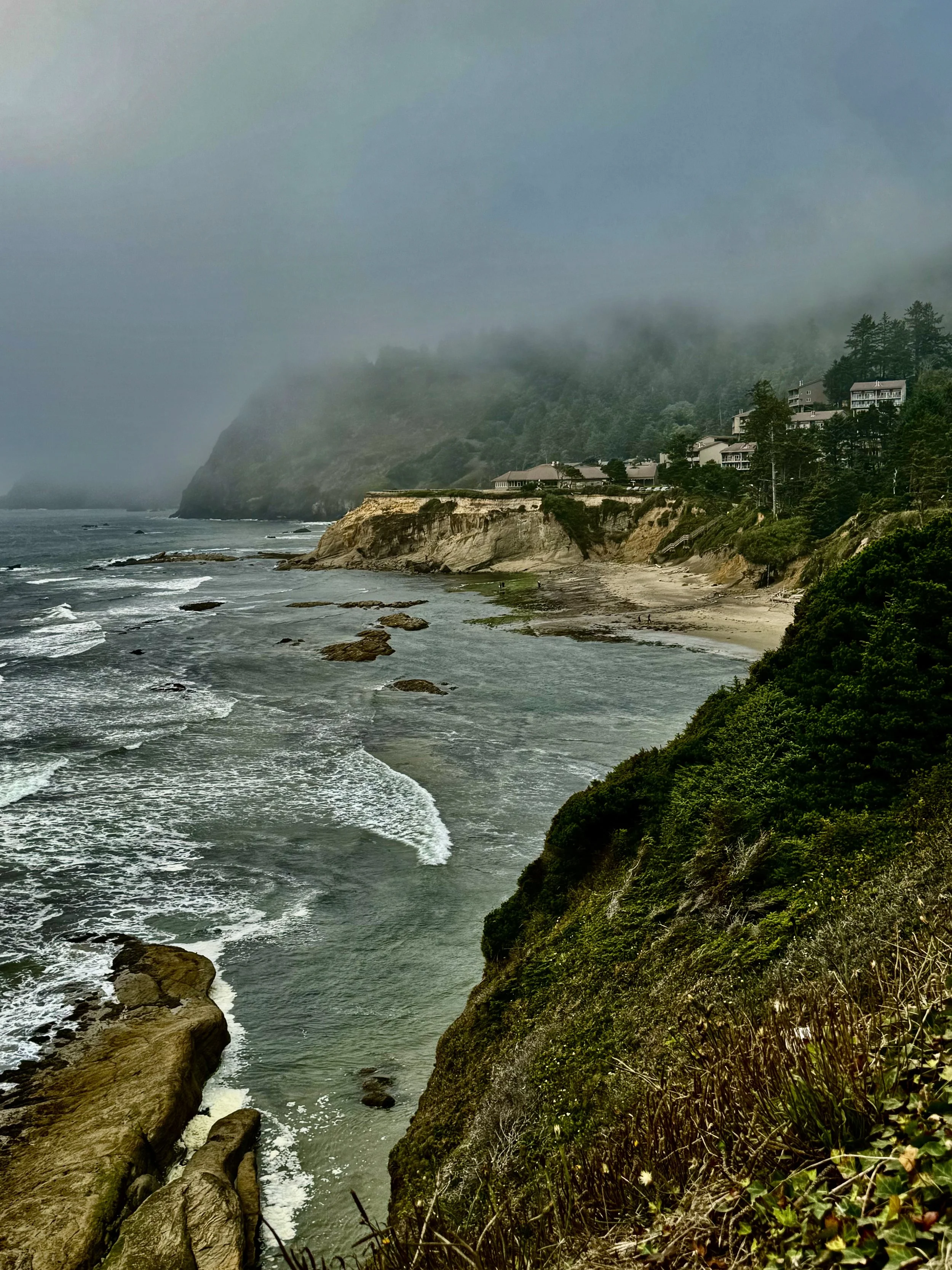 By late afternoon, we reached my favorite—Carl G. Washburne Memorial State Park. Trails at the south end wound through a lush Sitka spruce forest that opened suddenly to hidden Hobbit Beach, soft sand and sea mist filtered through tangled green branches.